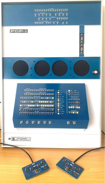 Three years ago, we started work on a replica, to complete the PiDP series (-8, -10, -11). Little did we know that this adorable dinosaur would become our favourite of the whole range. The PDP-1 is a truly fun machine to work and play with - and so, this text turned out a bit less formal than the other machines' pages.