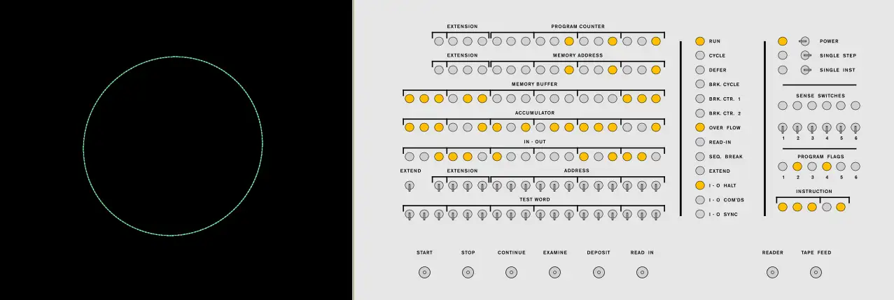 Its history is told very well on Wikipedia. A team at the CHM has restored one PDP-1 to working order; and Angelo Papenhoff has written exact simulators in both Verilog and C - including the Type 30 display. Our replica is based on this simulator.