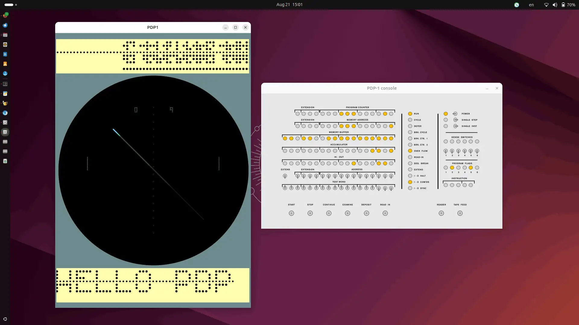 Driving the electron beam over its phosphor, you can get very pretty graphics effects from only a little bit of simple programming. But serious programs were also written, despite the minimal resources of the machine it spawned the first-ever text editors, a sensational Lisp, and FORTRAN. Even the first interactive multi-user system software. Much of this has been preserved and brought to run again.