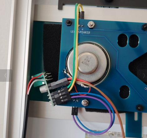 Use the 30cm ribbon cable to connect the I/O panel to the connector at the top of the main PCBInsert the USB audio dongle into the Pi, plug in the audio jack from the speaker panel
