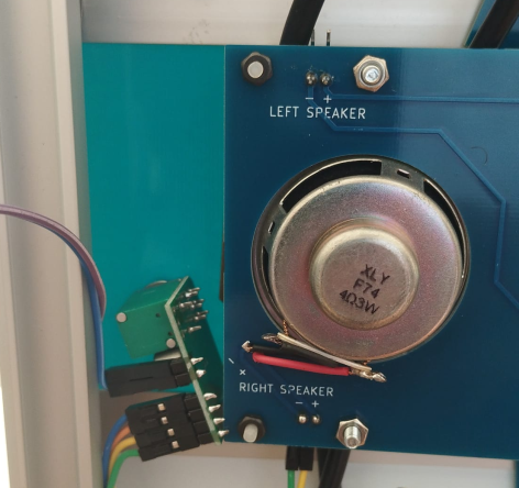 Use the 4 10cm F/F 'rainbow wire' with Dupont connectors, to connect the amplifier to the Speaker Frame's pin headers for both speakers.