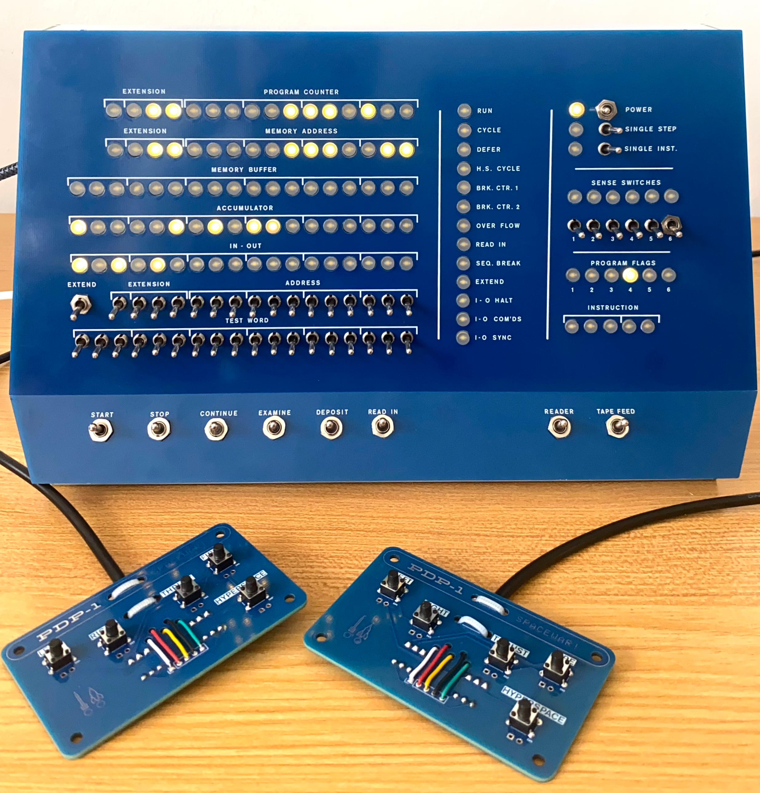 Three years ago, we started work on a replica, to complete the PiDP series (-8, -10, -11). Little did we know that this adorable dinosaur would become our favourite of the whole range. The PDP-1 is a truly fun machine to work and play with - and so, this text turned out a bit less formal than the other machines' pages.